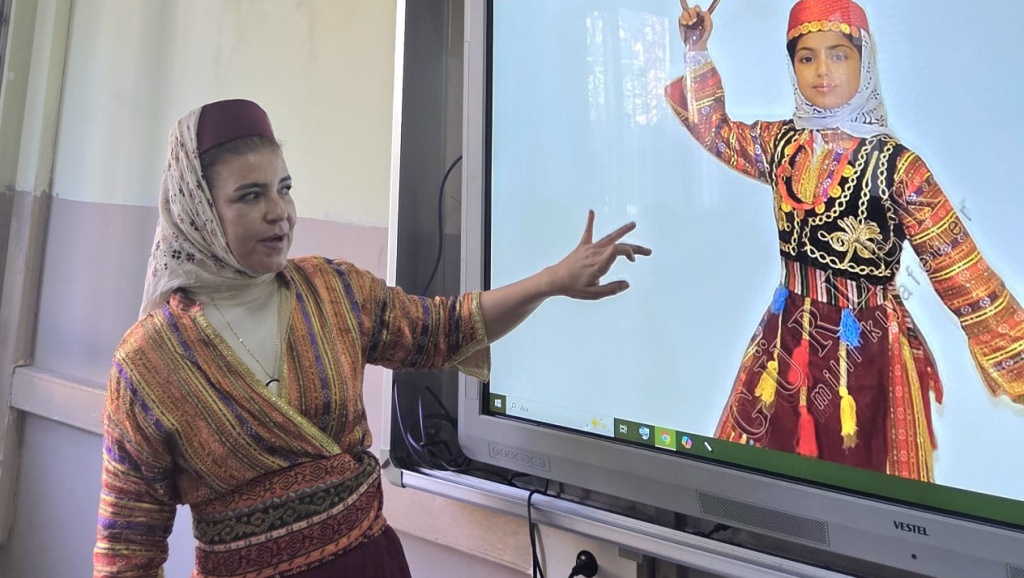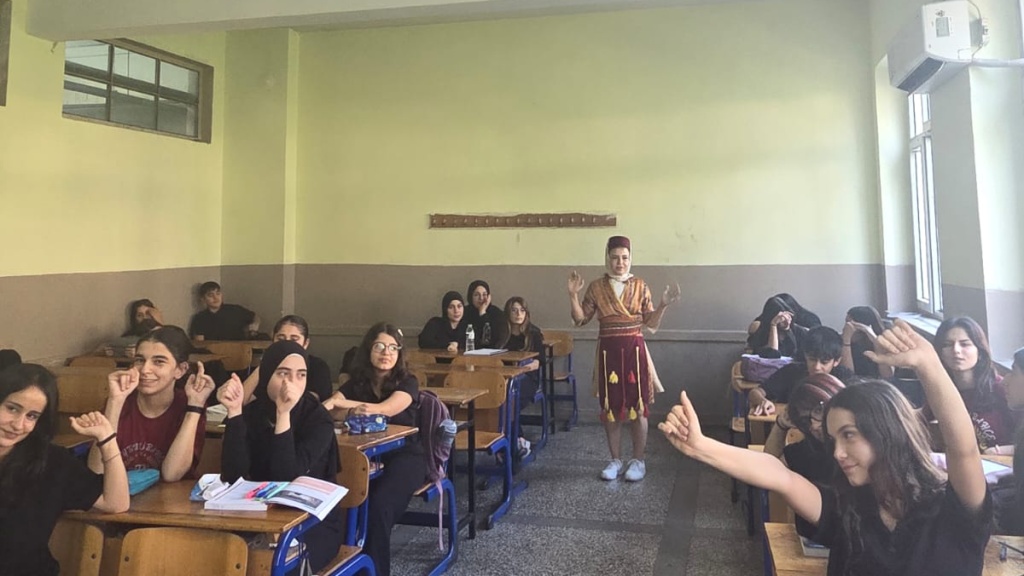 Etkinliğe Türk Dili ve Edebiyatı öğretmeni Nurdan Özel de Mersin yöresi kıyafeti ile katılarak kentin halk kültürü, yerel ezgiler ve sözlü edebiyat ürünleri hakkında bilgilendirme yaptı. Öğrenciler, Mersin’in çokkültürlü yapısı, ritim ve ezgi dünyasının şiir ve anlatı geleneğiyle ilişkisini örnekler üzerinden değerlendirdi.