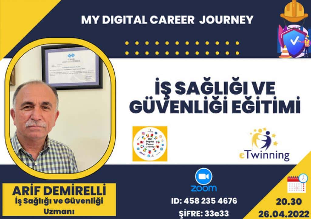 Öğretmenimiz Arife EROĞLU tarafından yürütülen Dijital Kariyer Yolculuğum eTwinning projesi ile öğrencilerin kendini tanıması, çevresindeki iş fırsatlarına ulaşmayı öğrenmesi, girişimci bir ruha sahip olması ve diğer bireylerden bir adım önde olmalarını sağlamaya yönelik faaliyetler gerçekleştirilmiştir. Öğrencilerimize meslekler hakkında bilgilendirme eğitimi verildi, sektör ziyaretleri gerçekleştirildi, dijital meslek sözlüğü oluşturdular ve cv hazırlama teknikleri öğretildi. İş sağlığı ve güvenliği uzmanı tarafından çevrimiçi iş sağlığı ve güvenliği eğitimi verildi. Aynı zamanda online webinarlar ile uzman konuklar öğrencilerimize kariyer yolculukları, tecrübeleri ve çalışmaları ile ilgili bilgiler verdiler.